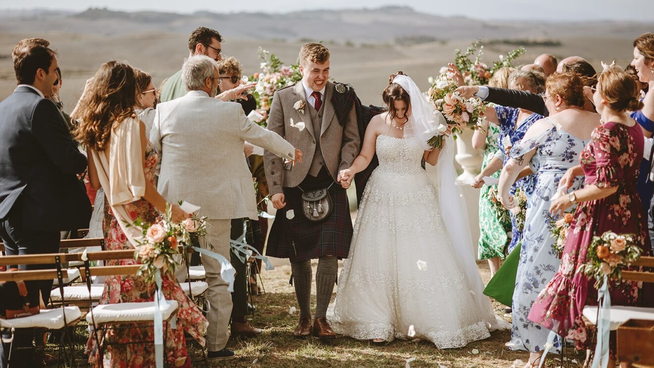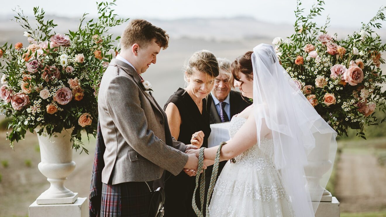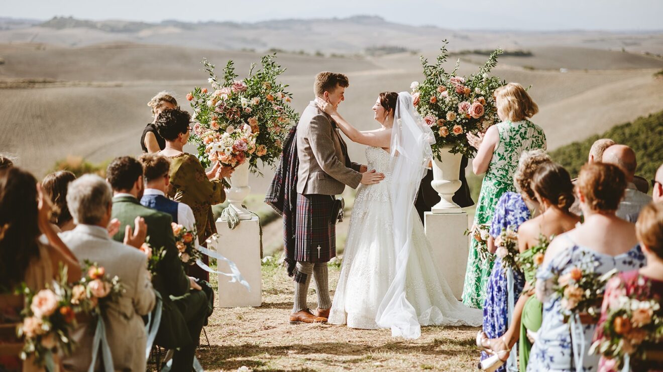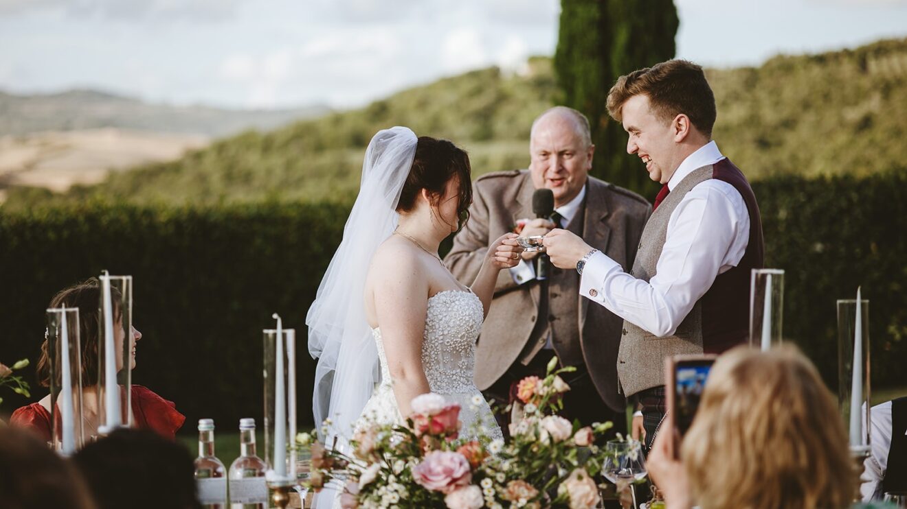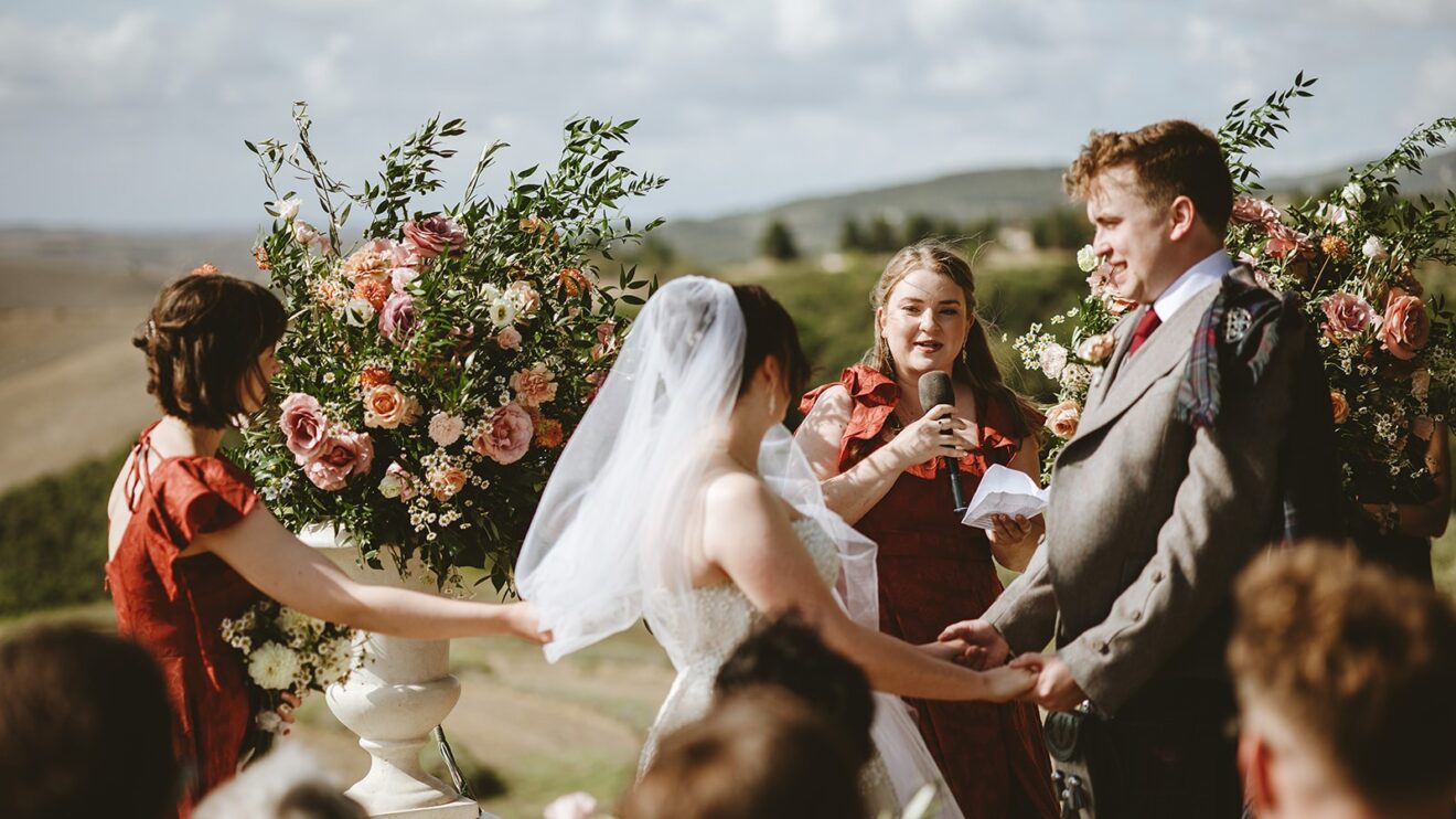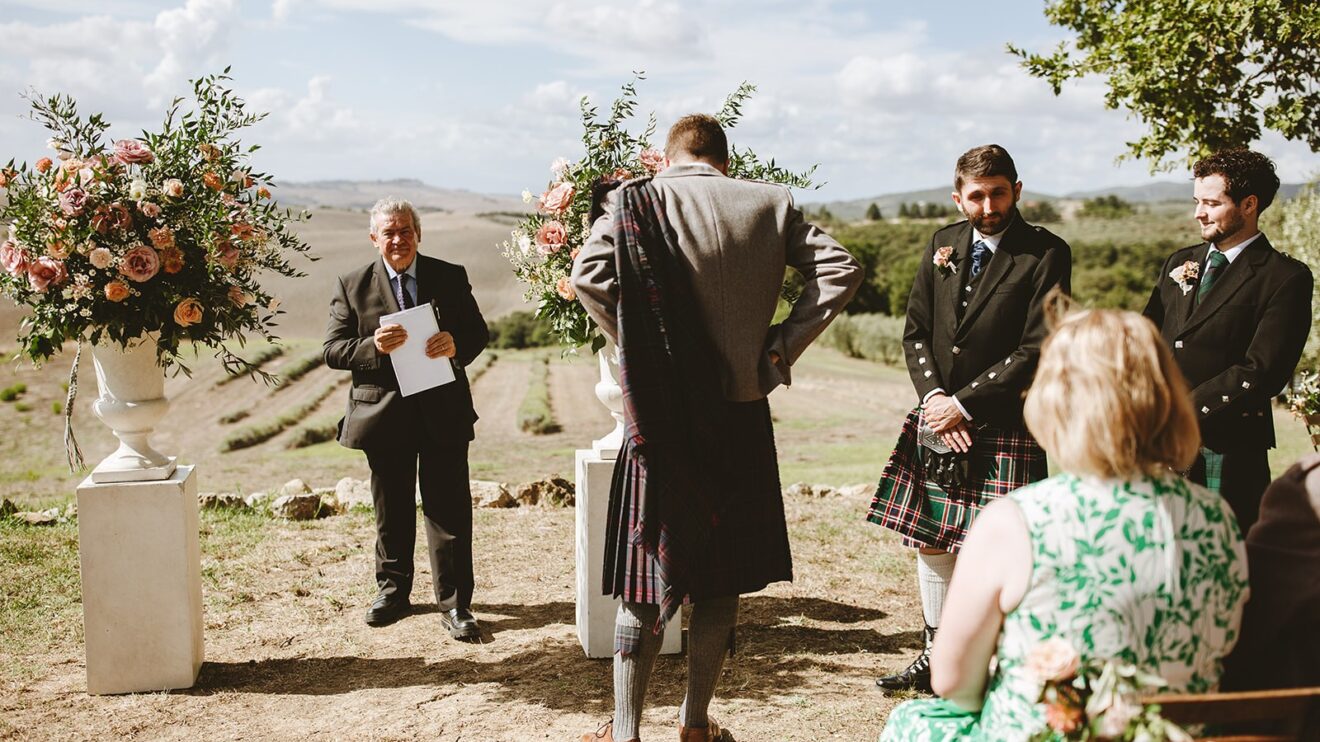 Emma and David said their vows overlooking the rolling fields of Volterra and enjoyed their aperitivo to the sounds of #italygypsyband