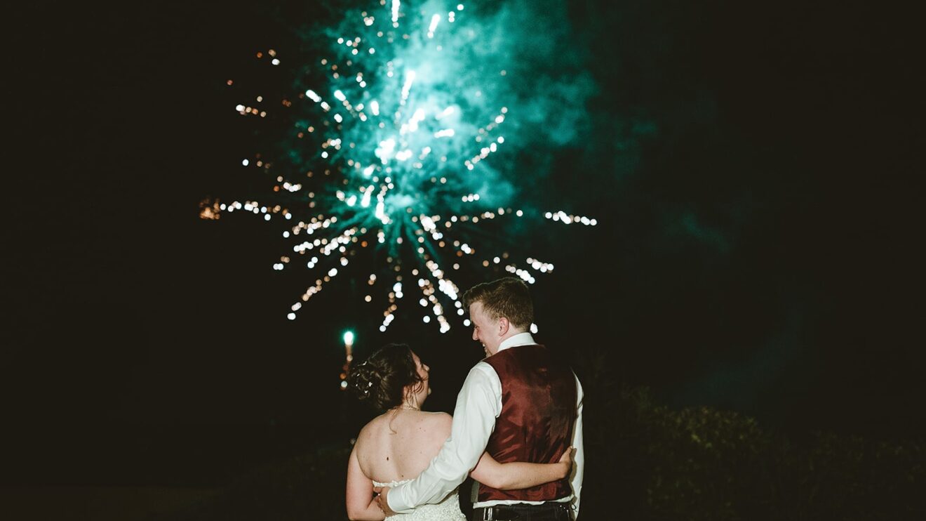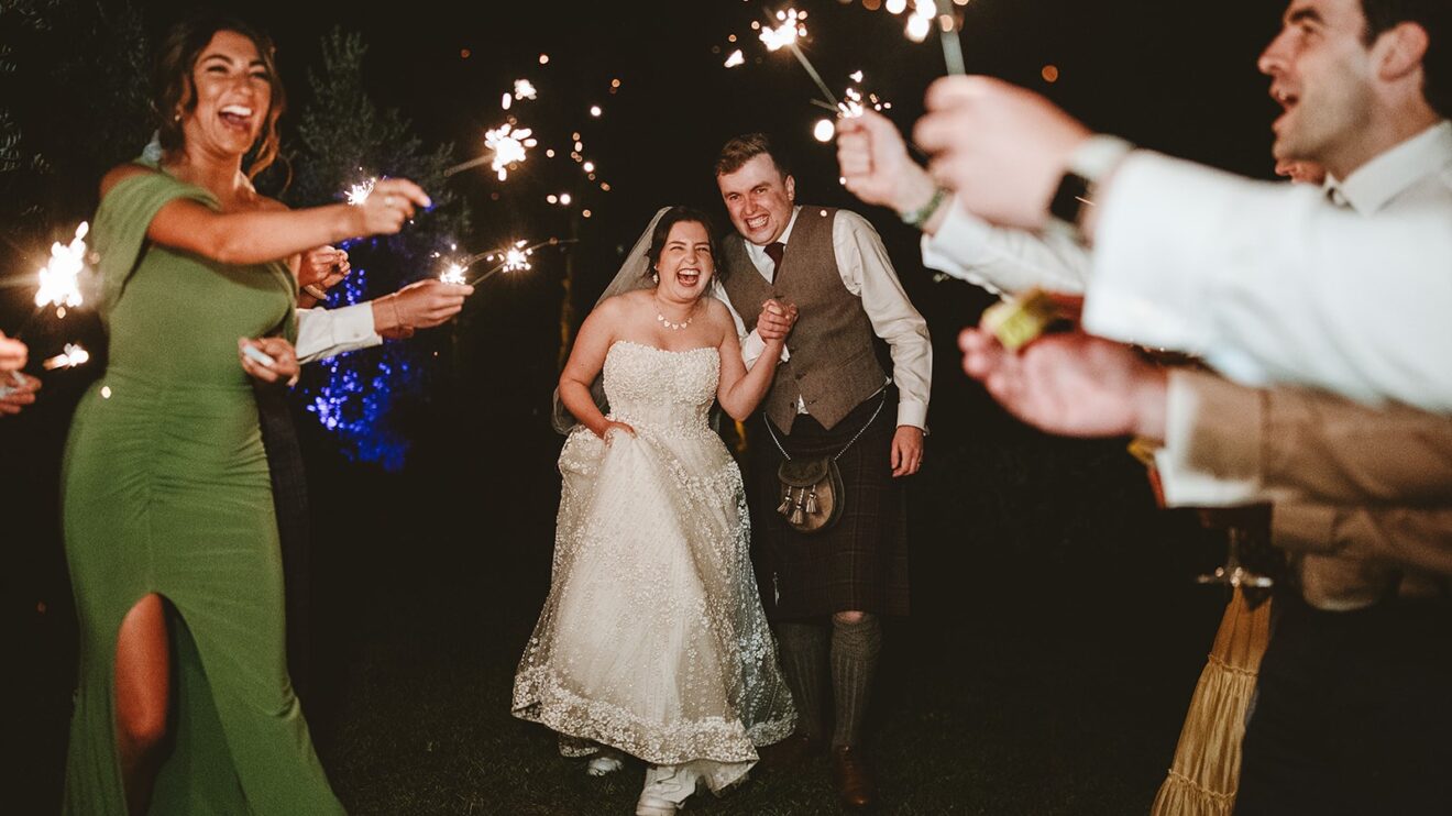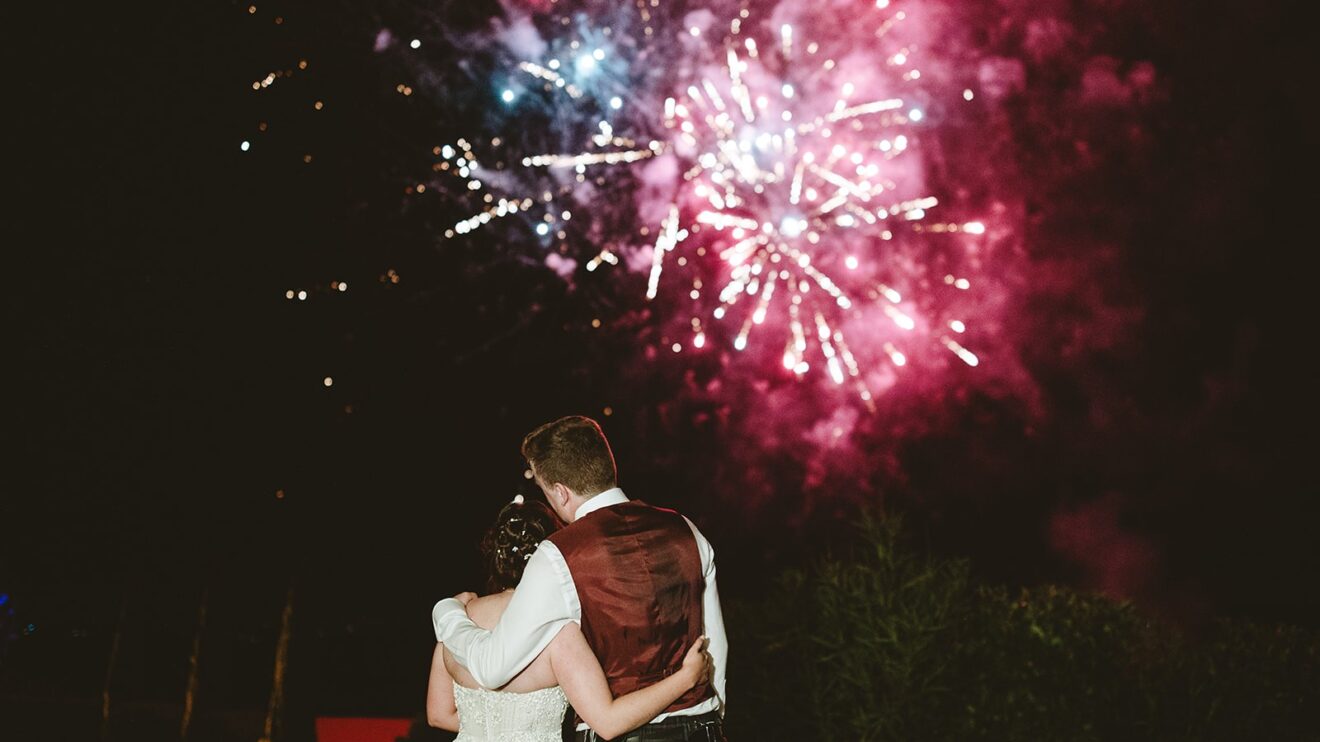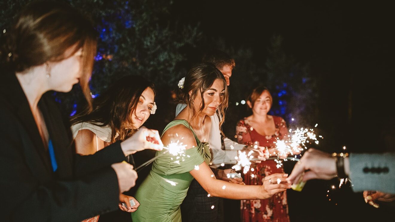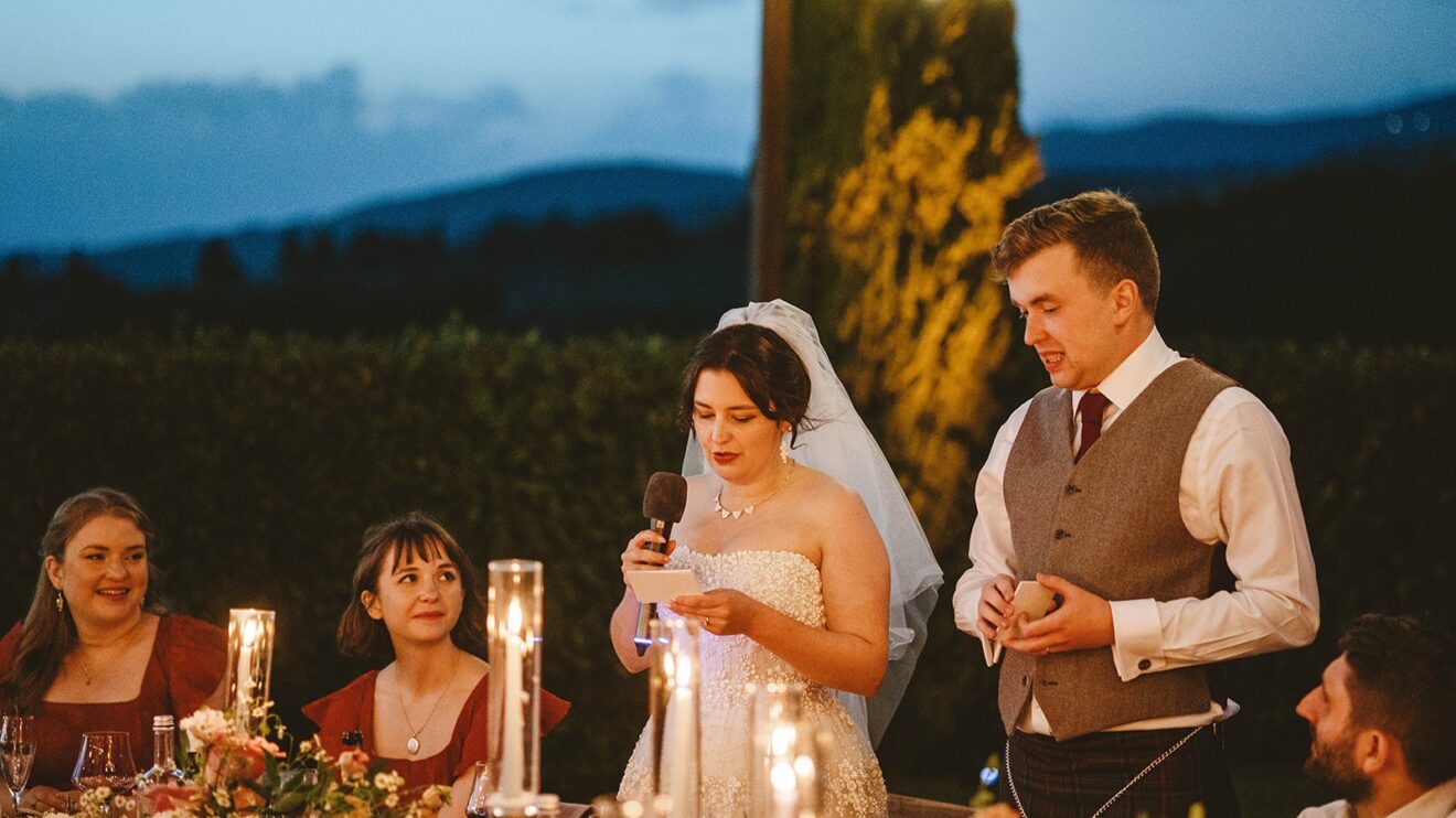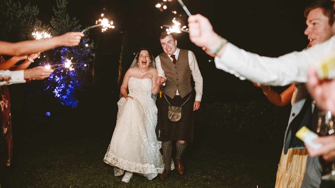 They had a beautiful set up in the villa gardens for the homecooked dinner by the family catering team. Followed by an amazing traditional cake cutting where the couple helped to put their millefoglie cake together and then fun and dancing by the pool from their Ceilidh band. The guests had great fun dancing and then surprise fireworks lit the night up. 🎉