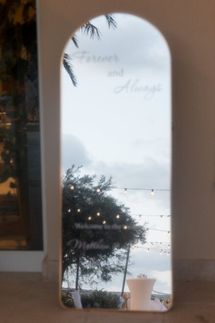 After dinner the first dance and parent dances were held in front of the arch followed by the cake cutting with fireworks lighting the sky. The party then moved inside the ballroom until the very early hours. Entertainment was provided with the 360 video booth and DJ.